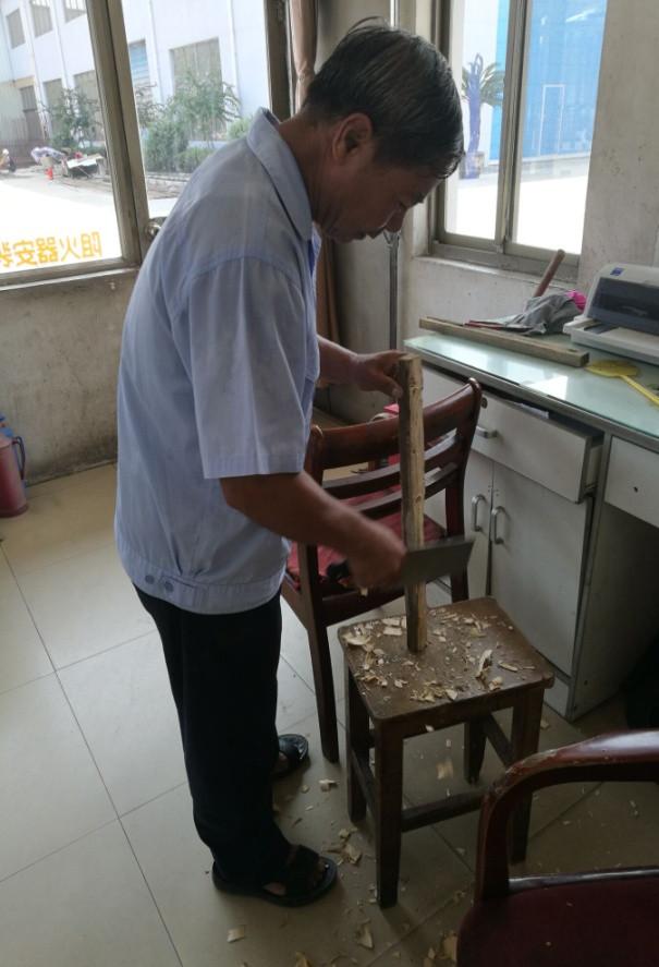 圖一: 陳小衛(wèi)在制作“固定木塊”