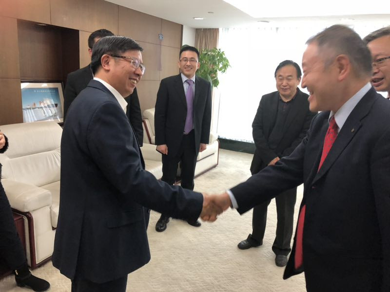 圖為寶鋼股份常務(wù)副總經(jīng)理儲總與黑川統(tǒng)括部長會見