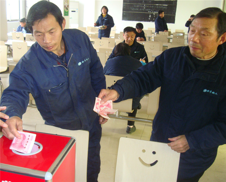 募捐活動得到了全公司員工的積極響應。在捐款現(xiàn)場,副董事長任煜華帶頭捐款,大家也紛紛慷慨解囊,奉獻愛心。其中,老伴剛做了心臟搭橋手術(shù)、亟需用錢的殷志達同志捐款200元,公司特困職工田波、毛躍彬二同志不顧家中困難,分別捐款100元,剛?cè)肼毠疽恢艿男聠T工張聰同志,捐款200元。有的員工病休在家,委托他人進行捐款;遠在千里之外的滬辦人員以及分布在全國各客戶現(xiàn)場的營銷員和技服人員,也通過微信轉(zhuǎn)賬的方式將愛心傳送。千山萬水,隔不斷同事們團結(jié)友愛的情誼;數(shù)九寒冬,擋不住“家人們”援助幫扶的熱情……截止發(fā)稿時止,共收到愛心捐款20370元。當周玉鵬從公司副董事長任煜華手中接過善款的時候,這位七尺男兒眼中噙著淚花,感激地說:“感謝公司、感謝大家,今后我一定要加倍地努力工作,來回報公司和大家的關(guān)懷和幫助!”
