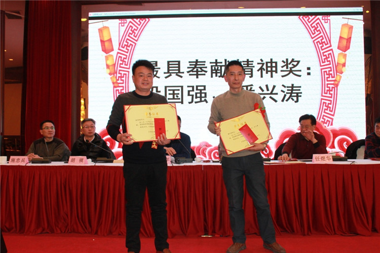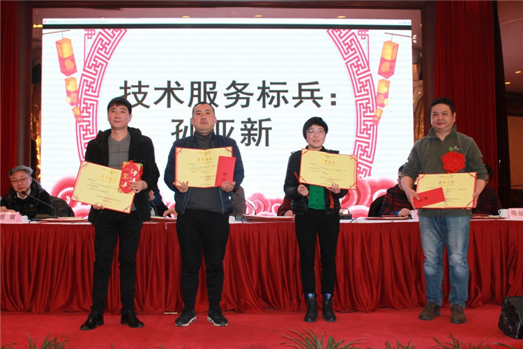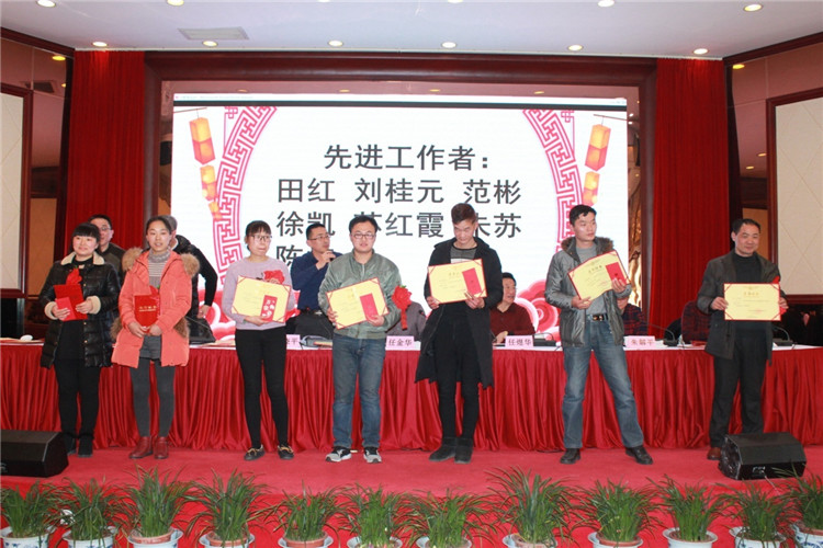 會上,對公司2017年度工作中獲得先進的集體和個人進行了表彰和獎勵,對市場一線人員的家屬進行了慰問!