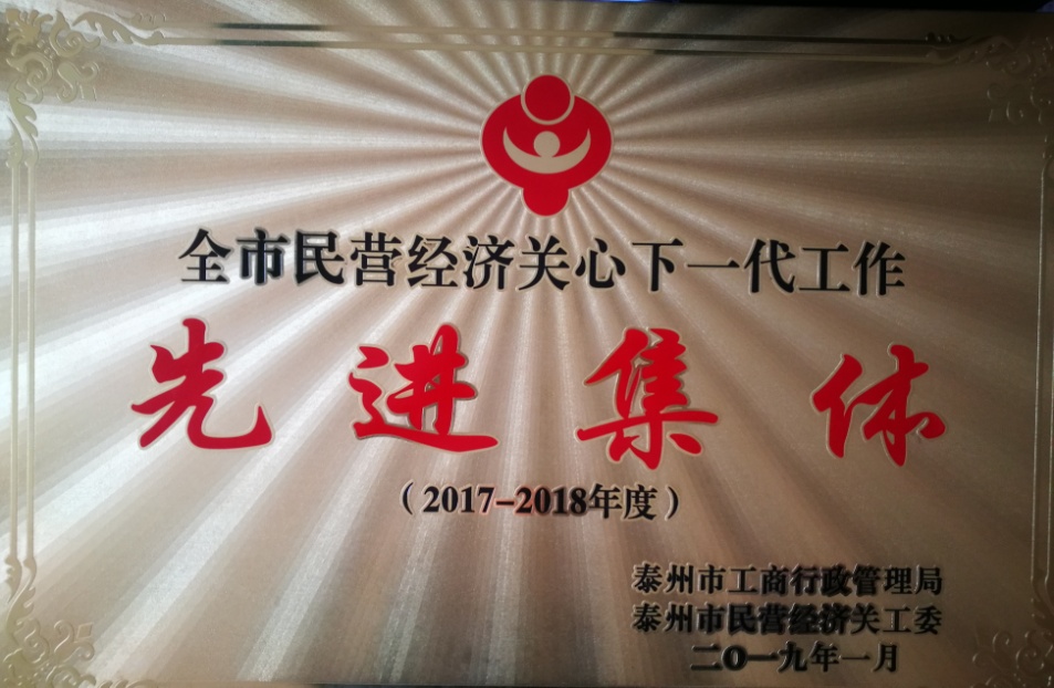 江蘇恒豐關(guān)工委成立于2003年3月,在上級民營經(jīng)濟(jì)關(guān)工委領(lǐng)導(dǎo)的關(guān)心、支持和指導(dǎo)下,切實履行各項職能,在社會積極關(guān)心未成年人健康成長,在企業(yè)積極營造良好、寬松的工作氛圍,努力為青年職工辦實事、做好事,為建設(shè)和諧社會發(fā)揮了不可或缺的積極作用。2019年1月被泰州市工商行政管理局、泰州市民營經(jīng)濟(jì)關(guān)工委授予“全市民營經(jīng)濟(jì)關(guān)心下一代先進(jìn)集體”。