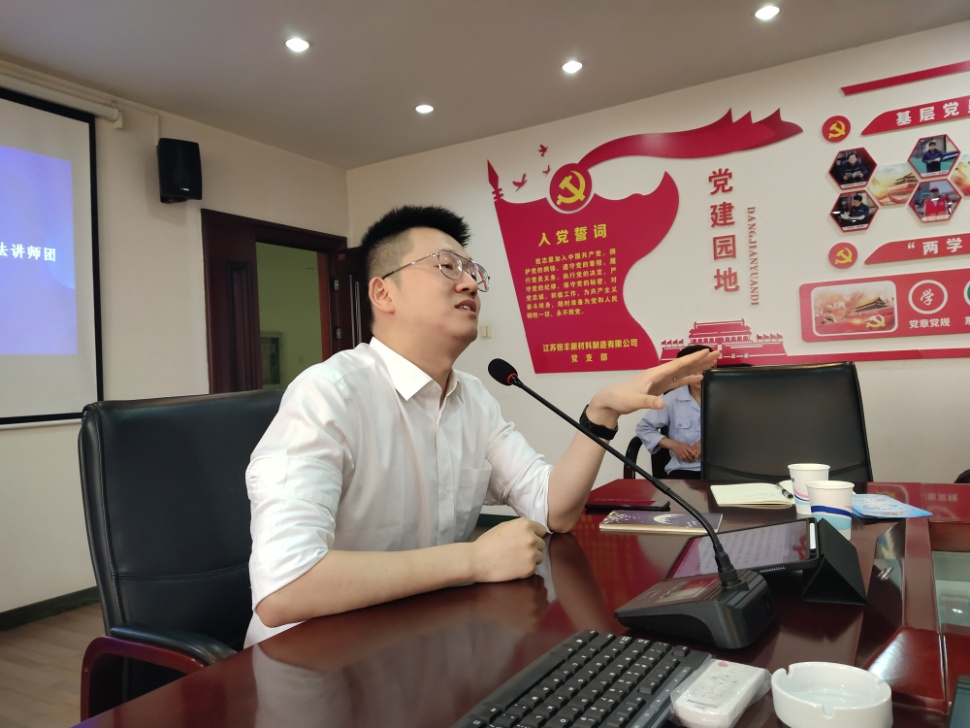 靖江市人民法院團(tuán)支部書記、法官助理、“驥江劍”青年普法講師團(tuán)團(tuán)長倪伽任法官為大家宣講了民法典相關(guān)法律知識和校園霸凌的一些案例,讓大家對婚姻、養(yǎng)老繼承、合同、隱私權(quán)等有了更深層次的了解,掌握了一些正確保護(hù)未成年人合法權(quán)益的方式方法。宣講期間,法官講師與員工間互動頻繁,現(xiàn)場氛圍和諧、輕松,倪法官的精彩講解不時博得員工雷鳴般的掌聲。